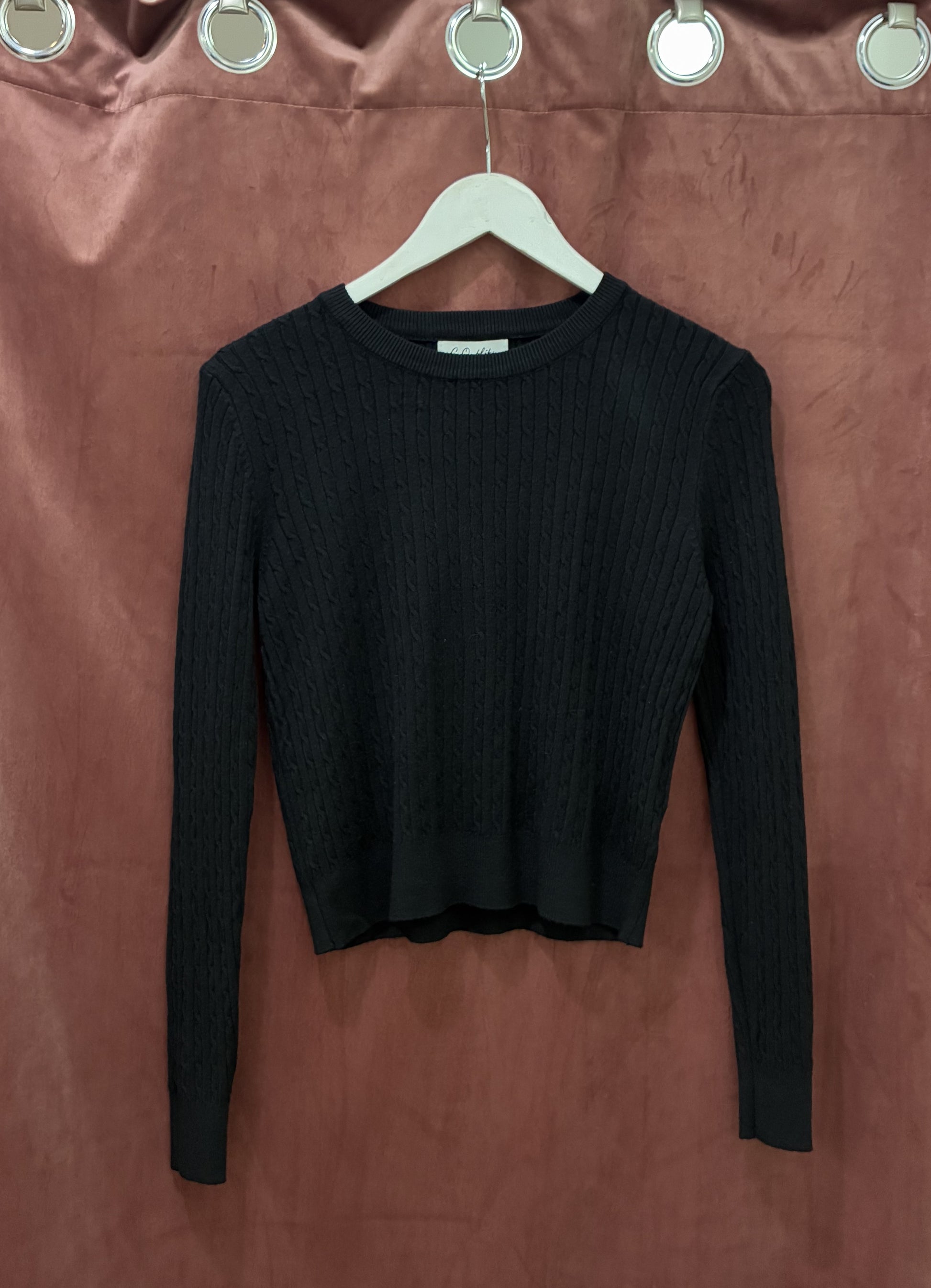 Cable knit sweater with rounded neckline