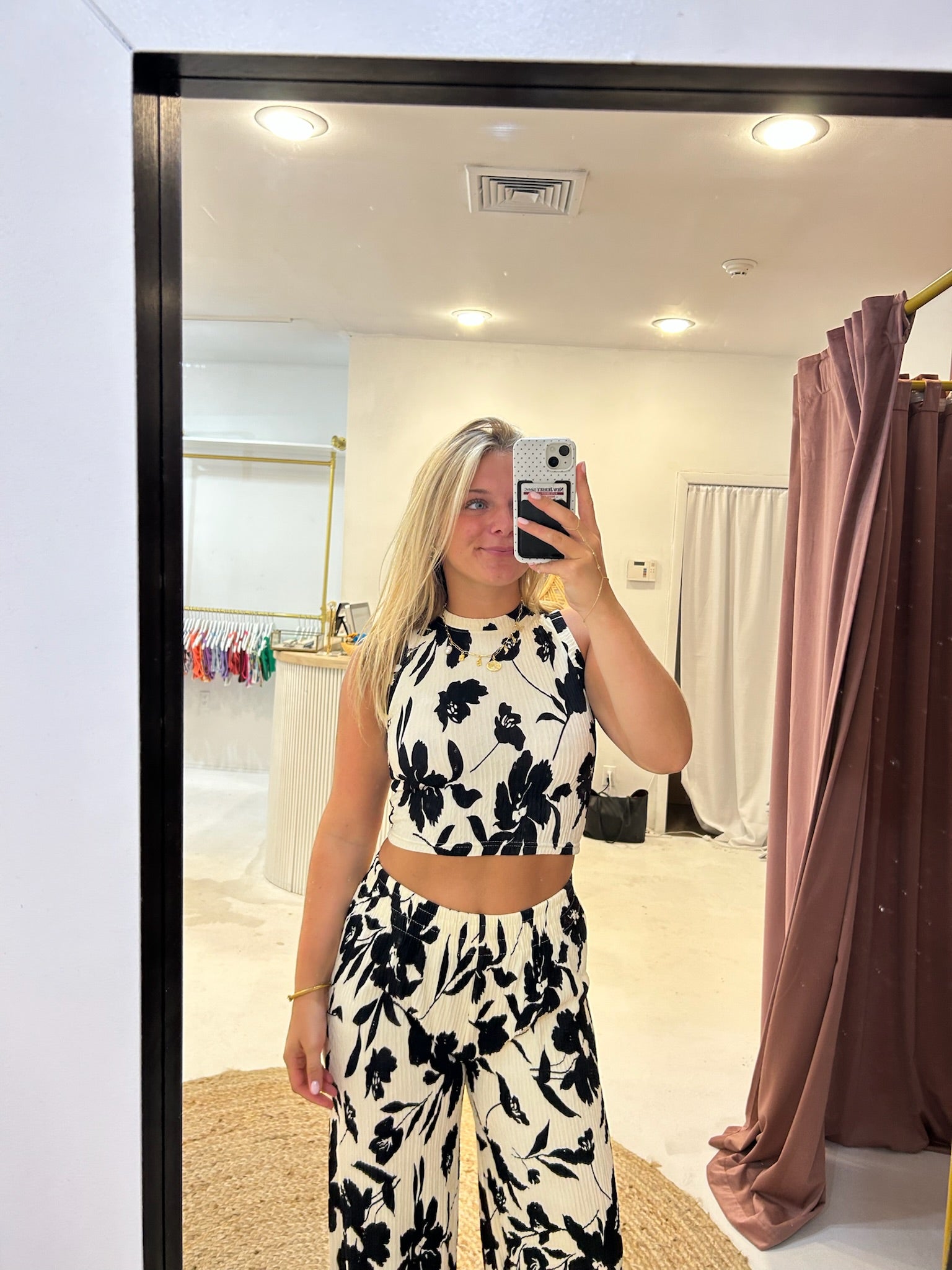 This crinkled textured wide leg Colby Pant is perfect for lounging, dressed up with accessories and heels for a night out, or dressed down with sneakers for a laid-back look. Pair it with the matching Monet Top for the complete look.
